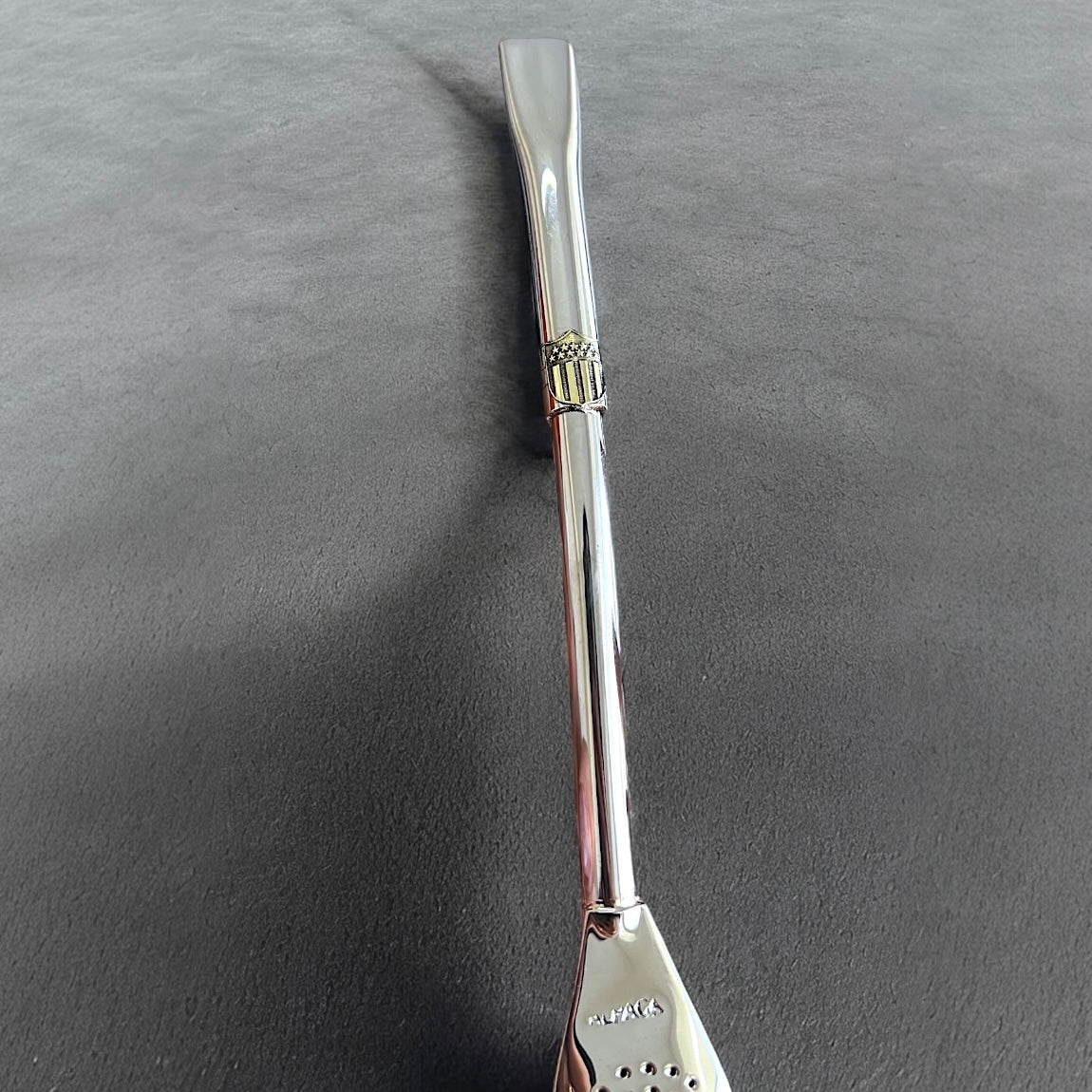 Bombilla de alpaca con Aplique de Peñarol 18cm de largo